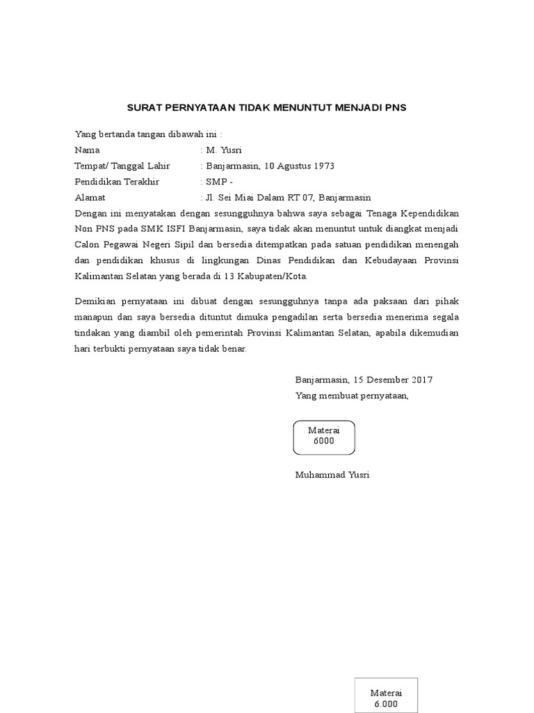 for "Surat Keterangan Tidak Berlangganan Pdam : Surat Pernyataan Tidak Menuntut Pns"